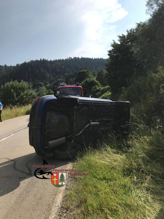 Am späten Nachmittag des 1. Juli 2019 wurden wir zu einem Verkehrsunfall in Hintertodtmoos gerufen. Auf der L 146 in Hintertodtmoos kam ein Fahrzeug ins Schleudern und überschlug sich daraufhin mehrmals. Das Fahrzeug blieb am Straßenrand auf der Fahrerseite liegen.